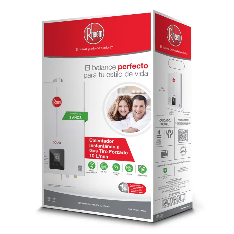 Calentador Para Agua Instantáneo Tiro Forzado Rheem Rhtf-chn10n 10l Para Gas Natural Blanco