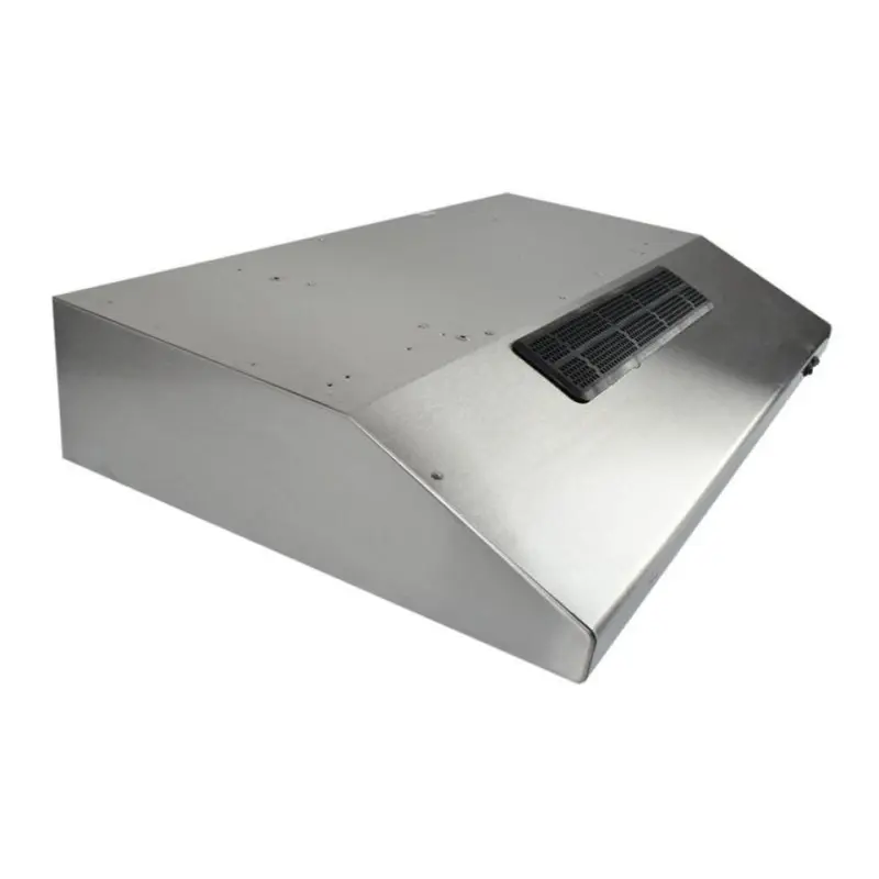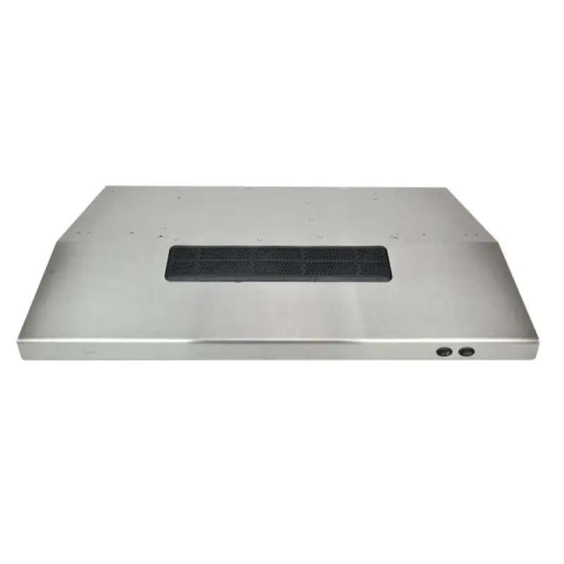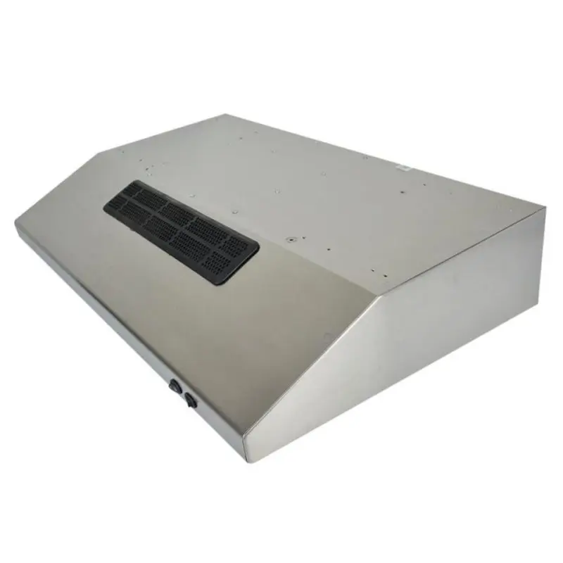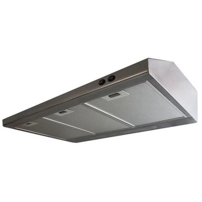 Hola buenos días, le comparto la ficha técnica ,Color: Titanium, Panel de mandos pulsantes, Dos velocidades Lámpara incandescente Filtros metálicos, lavables en lavavajillas Capacidad de extracción máxima: 250 m³/h Capacidad de extracción, UNE-EN-61591: 149 m³/h Nivel sonoro: min. 44 –máx. 66 dB ,Filtro de carbón activo para recirculación del aire, Potencia nominal máxima: 120 WVoltaje: 110 V~ Frecuencia: 60 Hz , Peso: 5.4 kg dimensionas Exterior (Alto/Ancho/Fondo): 150/800/500 mm.