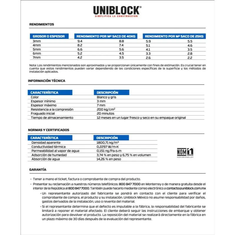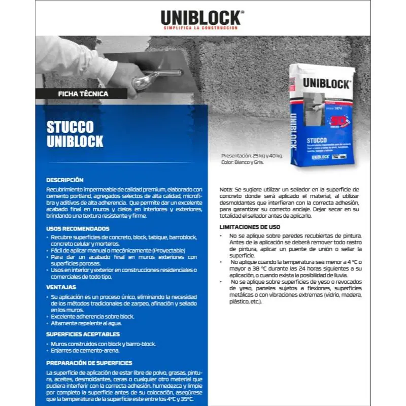 Estuco Uniblock 40 Kilogramos 30448 Blanco