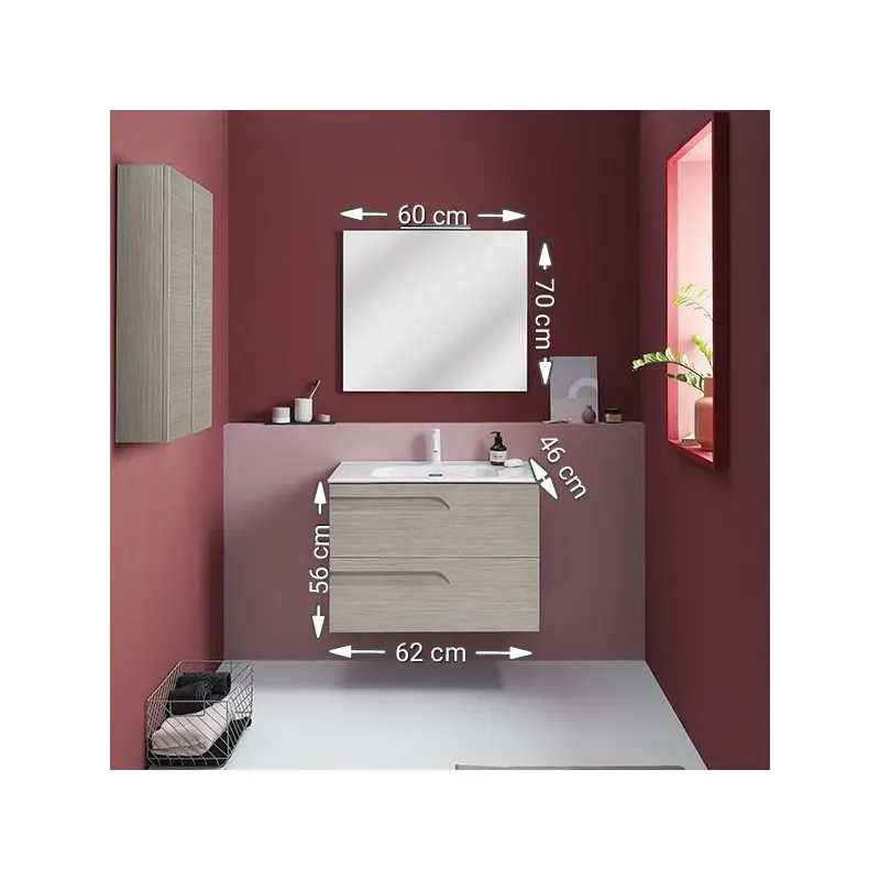 Tocador Sin Patas Con Espejo Y Lavabo Esbaño 60 Vitale 91359 Drift Wood