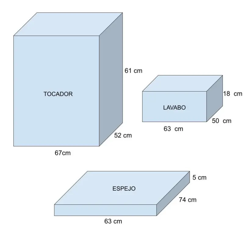 ¡Hola! Viene con el lavabo cerámico integral, extraplano. El material del frente del mueble es MDF de alta densidad en 18 mm. Los interiores vienen en melamina gris clara de 16 mm. El resto del mueble es un tablero de MDP con terminado melamínico por ambos lados, de 16 mm, de importación. Las medidas del mueble son 62 x 85 x 46 centímetros (largo x alto x ancho). Si tiene alguna otra duda o consulta, no dude en contactarnos a través de WhatsApp al 55 7609 4579. Estaremos encantados de atenderle y proporcionarle toda la información que necesite. ¡Saludos cordiales!