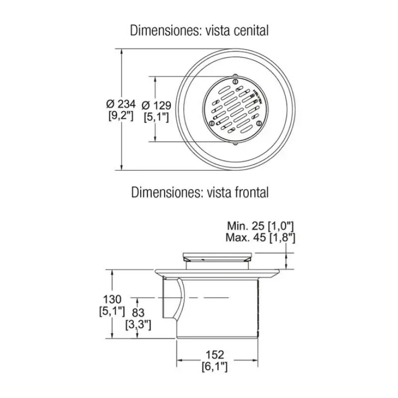 - Coladera de una boca de rejilla redonda.
