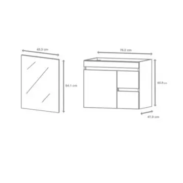 - Tocador suspendido con puerta y cajones.