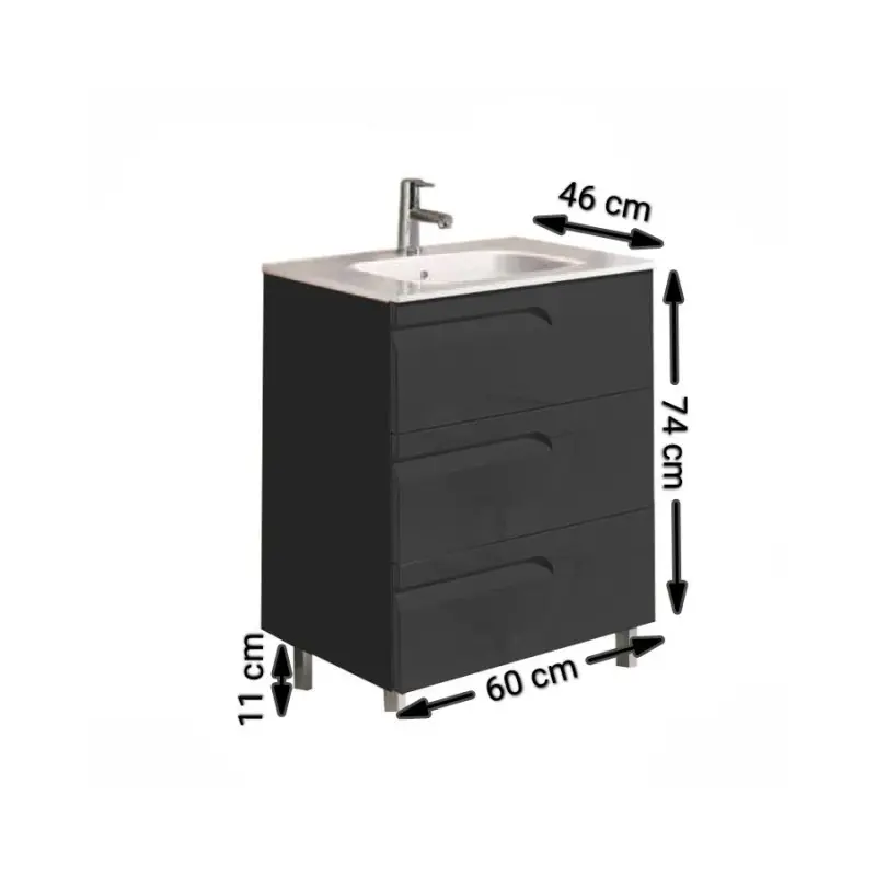 • El mueble en sí o lo que es la cajonera va al suelo gracias a sus 4 patas metálicas cromadas y regulables que hacen muy sencilla la instalación