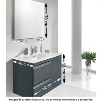¡Hola! Viene con el lavabo cerámico integral, extraplano. El material del frente del mueble es MDF de alta densidad en 18 mm. Los interiores vienen en melamina gris clara de 16 mm. El resto del mueble es un tablero de MDP con terminado melamínico por ambos lados, de 16 mm, de importación. Las medidas del mueble son 62 x 85 x 46 centímetros (largo x alto x ancho). Si tiene alguna otra duda o consulta, no dude en contactarnos a través de WhatsApp al 55 7609 4579. Estaremos encantados de atenderle y proporcionarle toda la información que necesite. ¡Saludos cordiales!