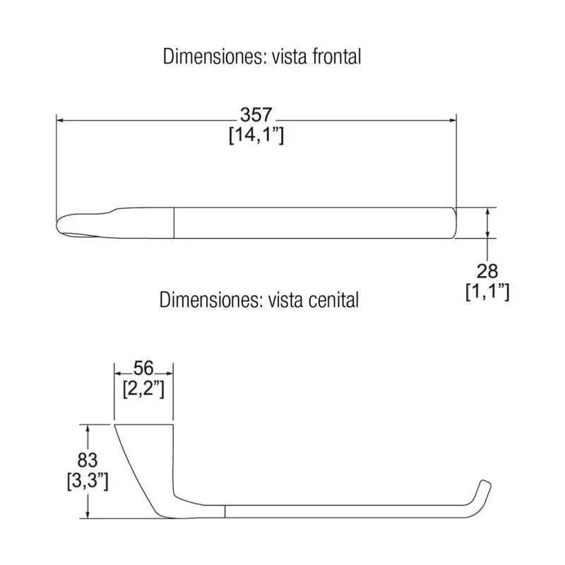 Toallero Corto Piura Helvex Pui-09 Cromo