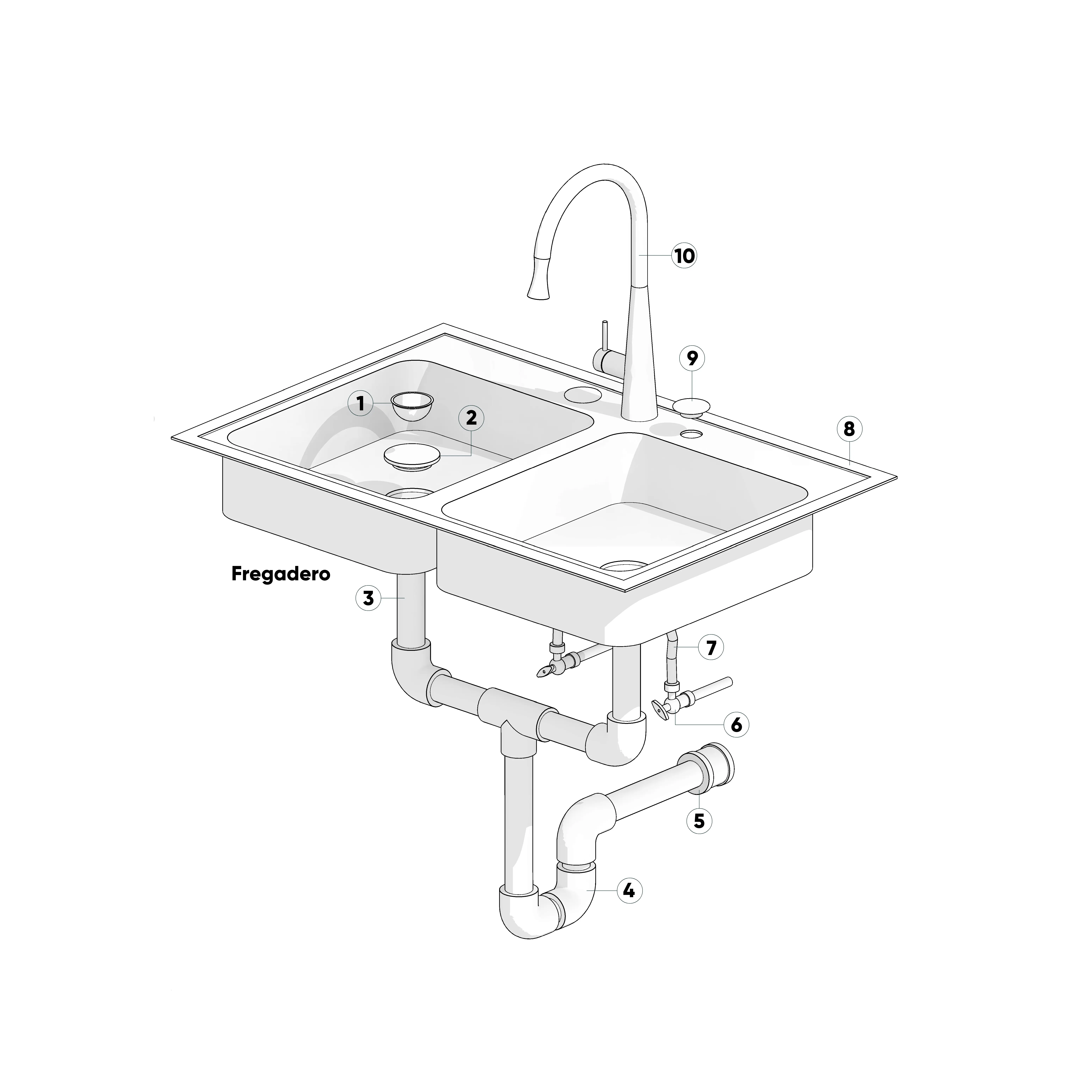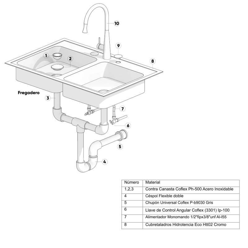 Lista de materiales sugerida para la instalación del fregadero