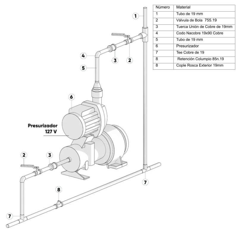 Lista de materiales sugerida para la instalación de Presurizador