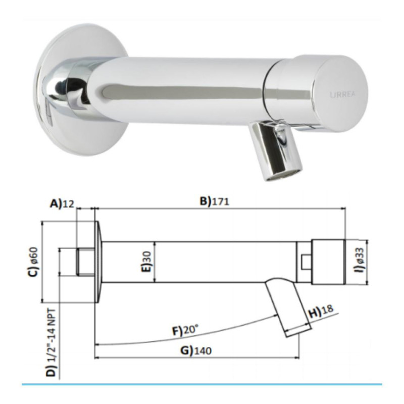 Llave Temporizadora Urrea A Muro Larga 25.2518.21