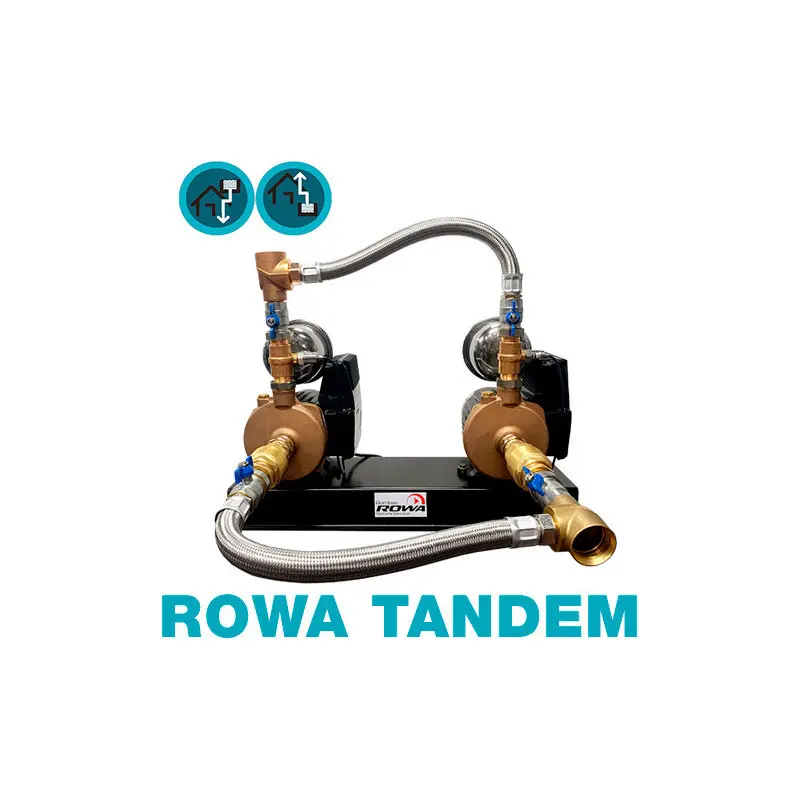 • Rowa TANDEM es un sistema donde dos bombas del mismo modelo trabajan juntas, proporcionando un respaldo automático. Opera en cascada para presurizar varios puntos simultáneamente, y en relevo permitiendo una mayor vida útil del equipo.