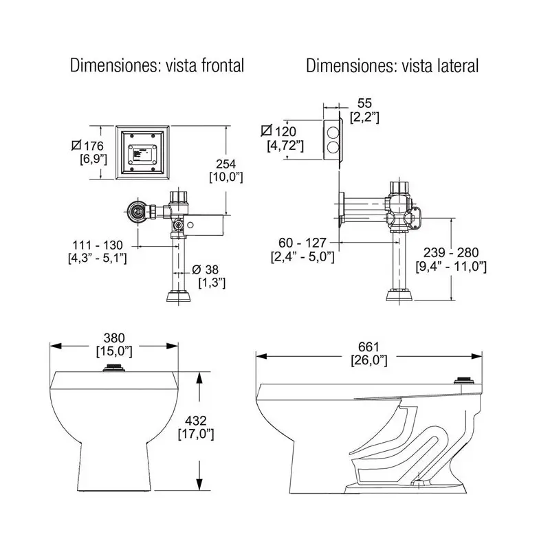 - Mingitorio tradicional para fluxómetro.