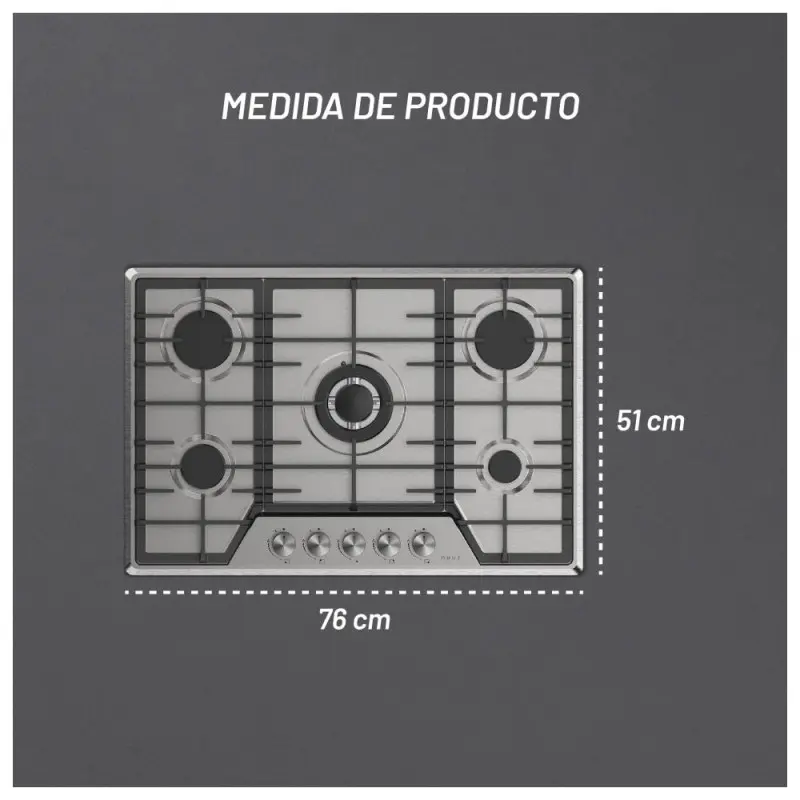 - Versatilidad culinaria: Con cinco quemadores distintos, puedes cocinar múltiples platillos al mismo tiempo, desde un delicado hervor hasta un intenso salteado, inspirando creatividad y eficiencia en tu cocina.
