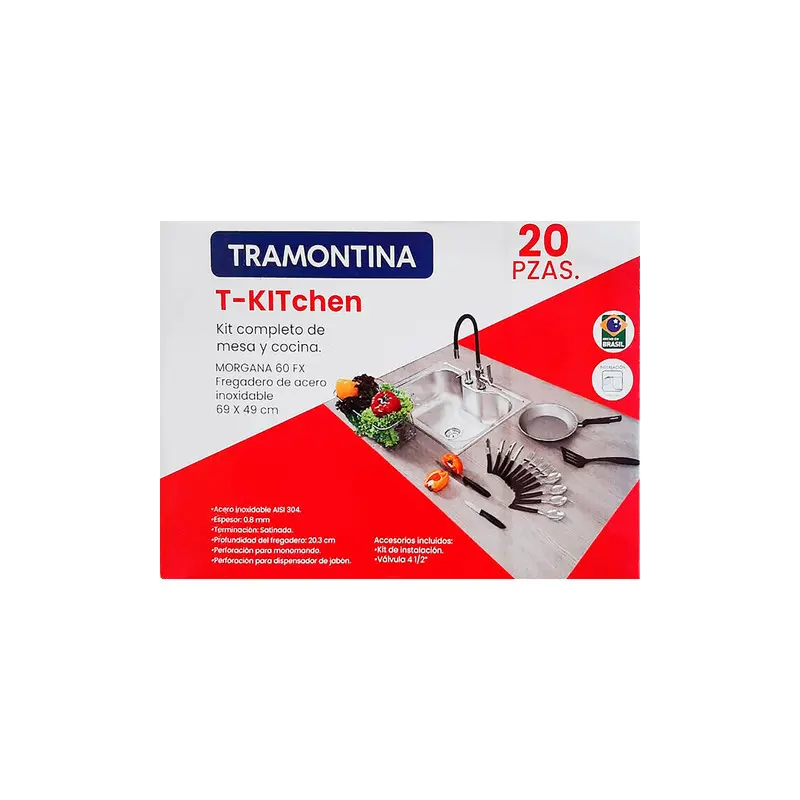 Tarja Empotrar Con Accesorios Tramontina 68x48 T-kitchen 32200/530 Acero Inoxidable